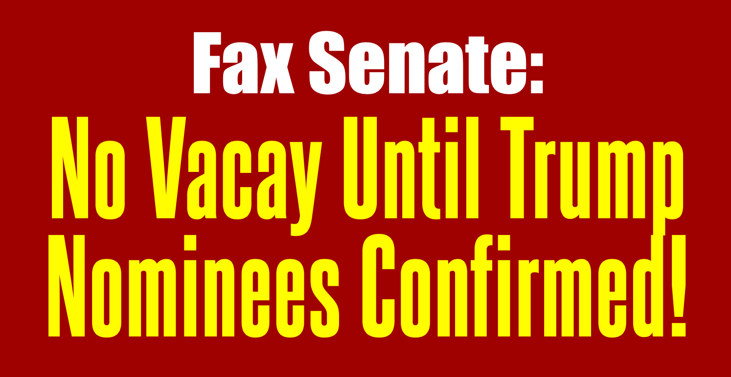 << Click here to fax Congress now and say "No Vacay until you Confirm President Trump's Nominees." >>