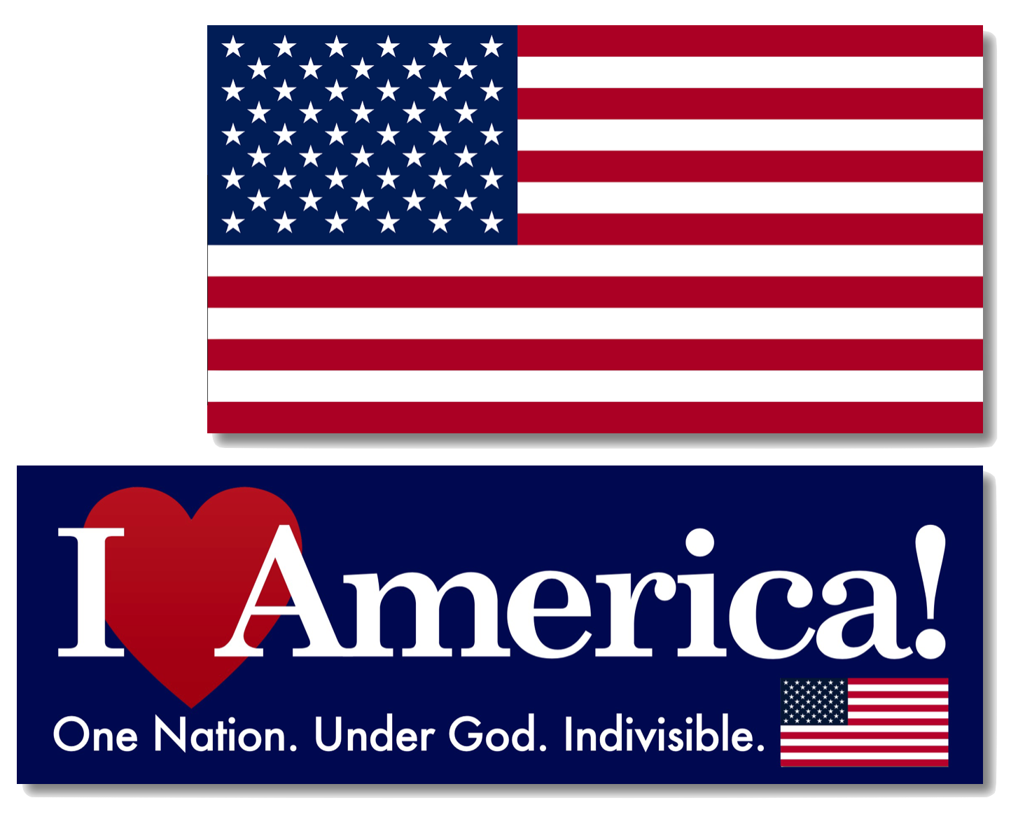-- our 4x6 American Flag ReSticker and our very popular "I LOVE AMERICA" ReSticker.