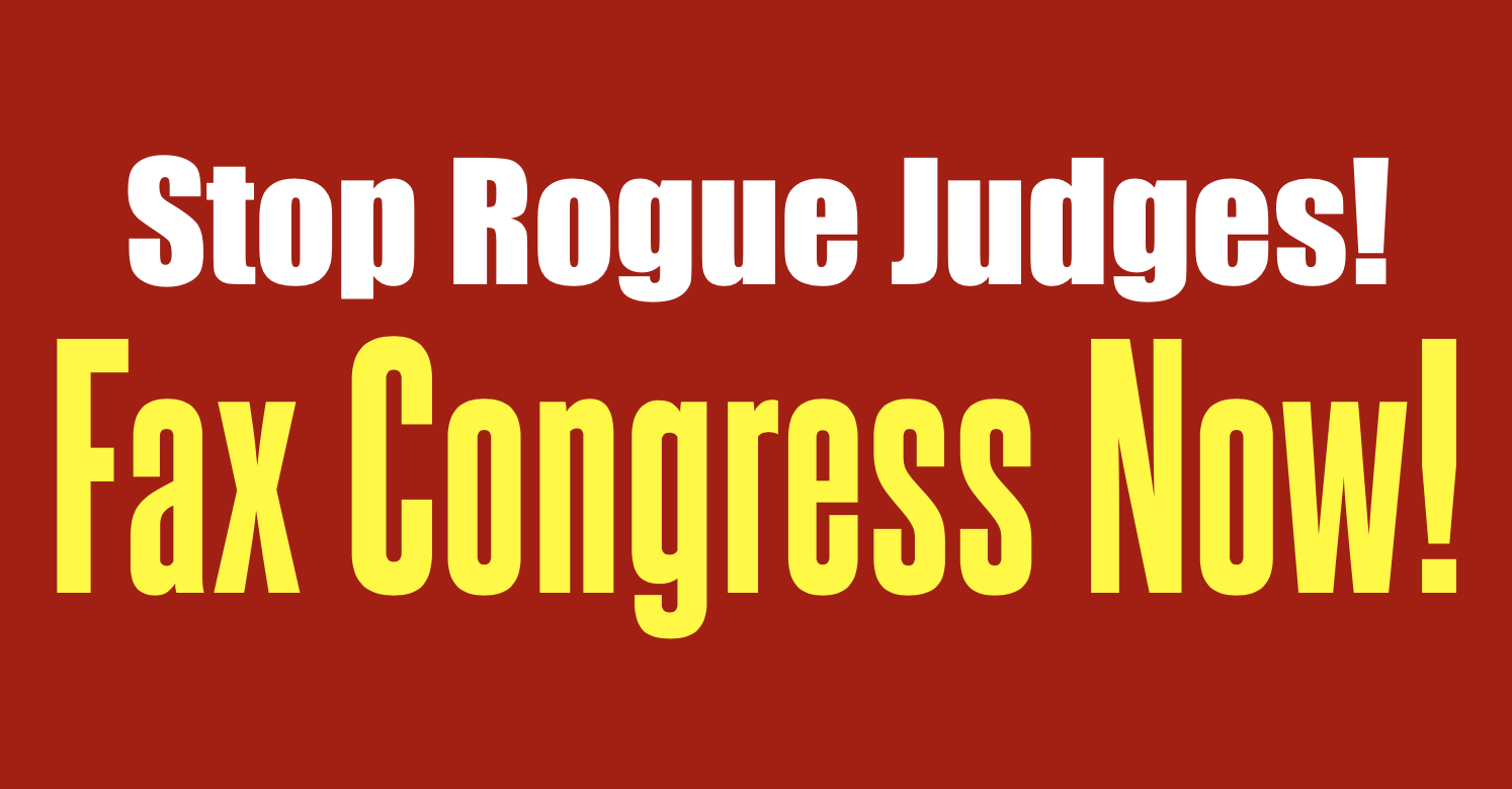 UPDATE: Bill to stop Rogue Judges appears to be STALLED in Senate Judiciary Committee. Hearing Thursday. Fax 10 key GOP members below and demand action!