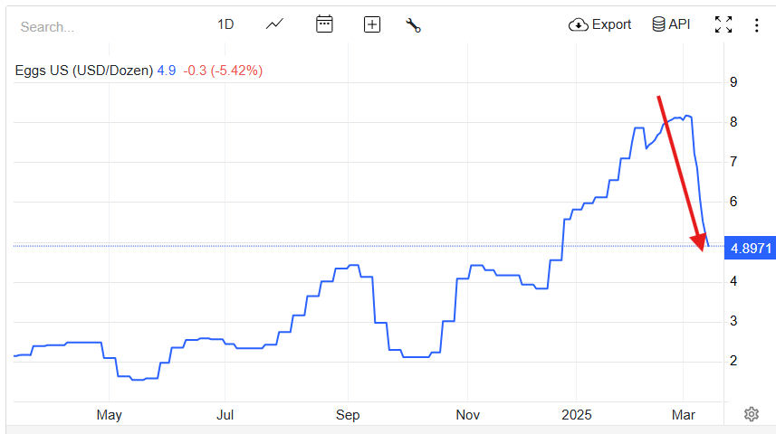 And even the price of eggs is plummeting (already down 25%):