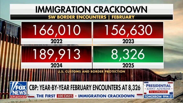 This reset is happening while the President is securing the border like never before. Border encounters have plummeted by over 95% to their lowest levels on record: